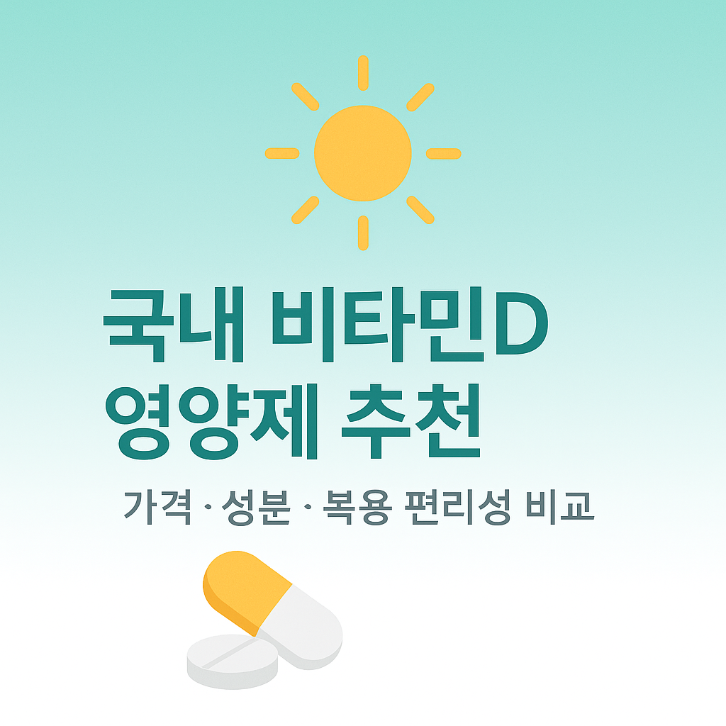 비타민D 영양제는 뼈 건강, 면역력 유지에 필수적입니다. 국내 제품은 고려은단·종근당·한미·대원·CJ·유유 등이 대표적이며, 가족 상황에 따라 고함량/저용량, 정제/츄어블/캡슐로 선택하면 됩니다. 무엇보다 장기 복용 전 전문가 상담을 권장합니다.